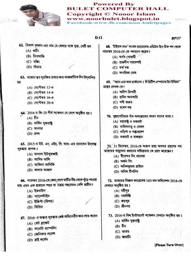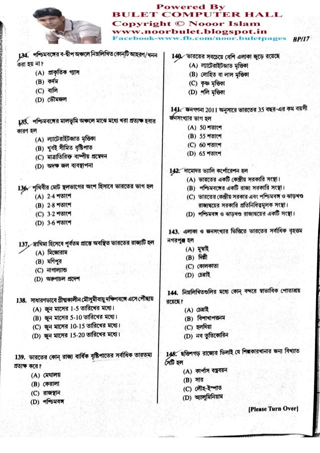 Wbcs Preliminary Question Paper 2017 Wbcs Question Paper