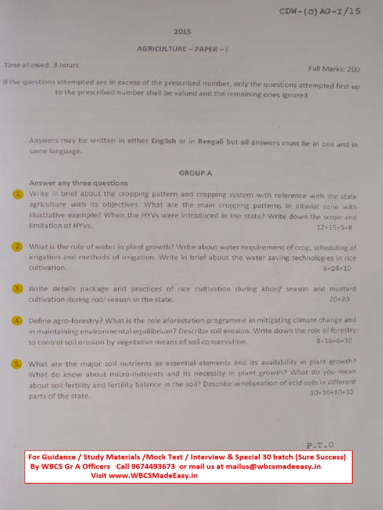 Wbcs Mains 2015 Agriculture Paper I Pdf